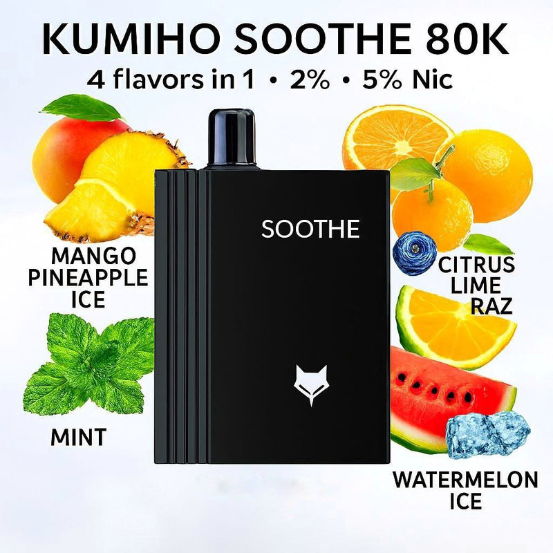 Meet the Kumiho Soothe 80K, a flavor-first pod system designed for vapers who value smooth performance and effortless operation. With four distinct flavors in one sleek unit, it delivers tropical sweetness, crisp mint, bright citrus, and juicy watermelon in every inhale.