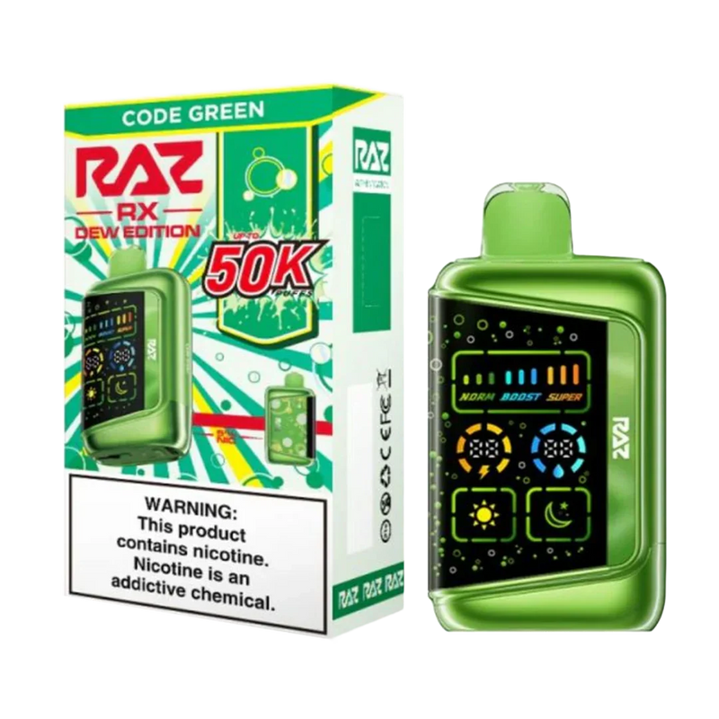 Code Green – RAZ RX50K is a high-capacity disposable vape designed for flavor lovers who want long-lasting performance and customizable control, a...